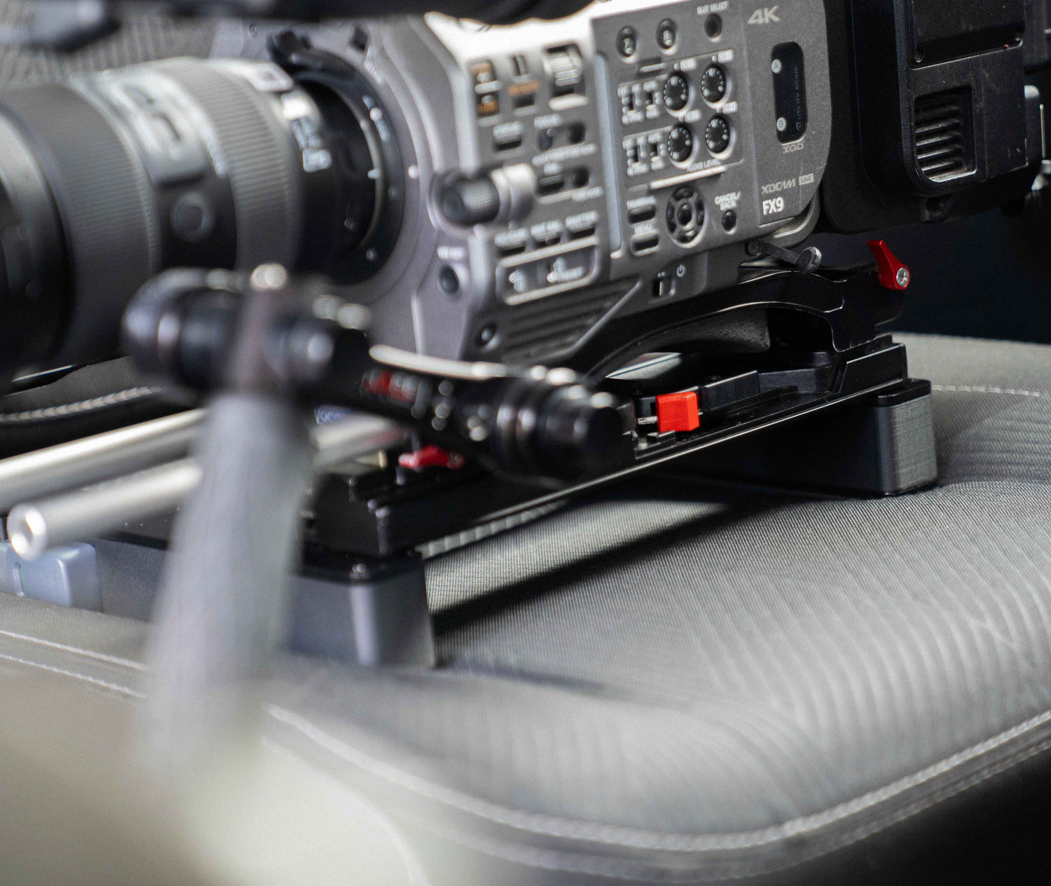 The Gearseat lets you mount your fully rigged camera directly into the back seat, no more dismantling, no more bulky cases, and no more gear stacked dangerously in the trunk. Just lock it in and start driving.